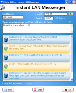Improve communications in your company, student campus, home network, or even replace that old pabx system. SSuite IM Chat is designed to be an instant messaging software for use within small, medium and large Local Area Networks {LAN}, even Wi-Fi networks.