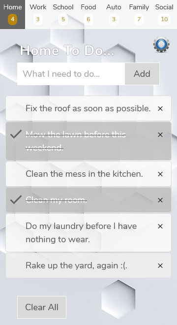 Features available includes customizing the background wallpaper, up to 50 wallpapers for light or dark mode, and selecting from light or dark mode to enhance your day/night viewing. It also includes up to six categories in which you may enter and save all you to do tasks. ( Home, Work, School, Food, Auto, Family, Social )